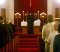 We pass an offering plate during the service so that our worship may include bringing gifts to God. (Offering envelopes are available and keep our gifts a private matter known only to God who sees what we do in private.)
